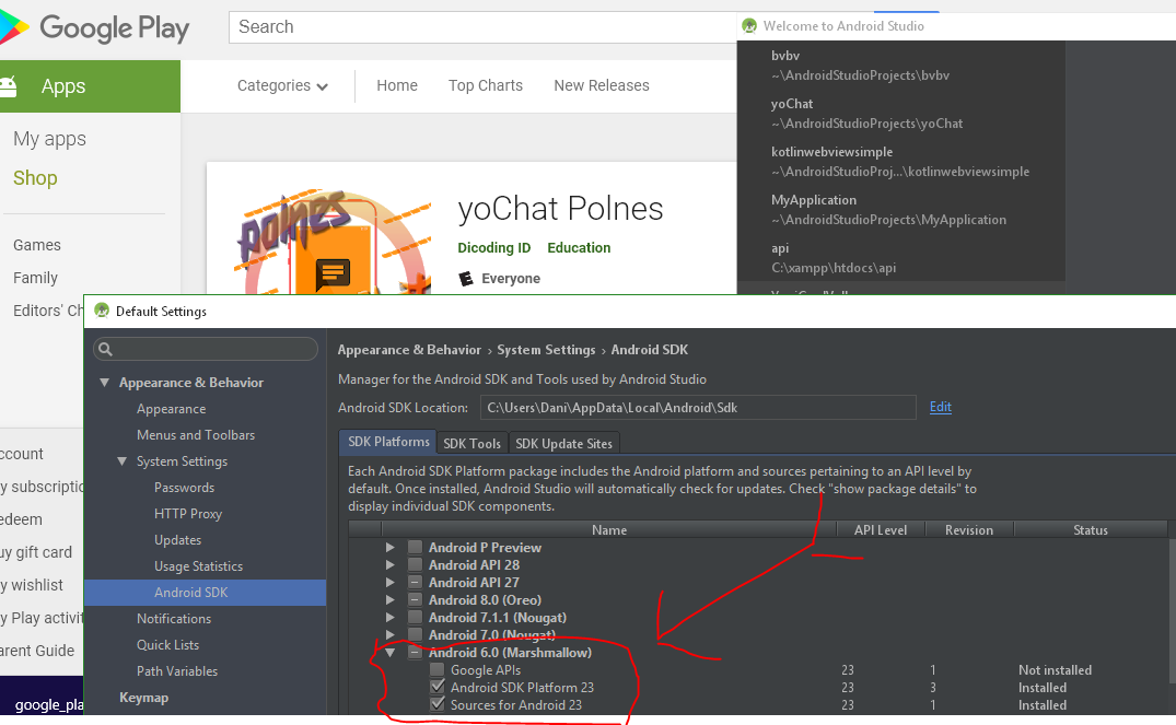 Обновите библиотеки и SDK Android Studio