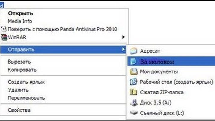 Определите действия контекстного меню