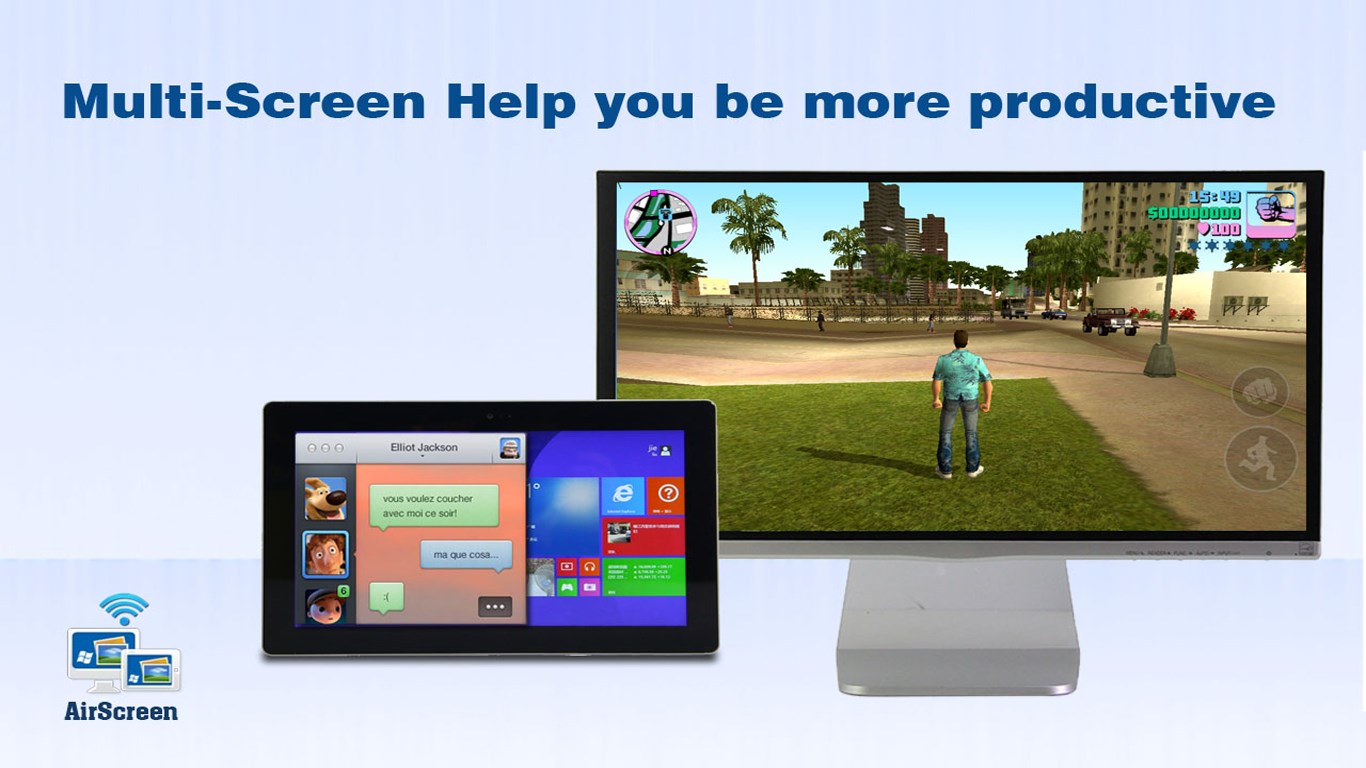 Преимущество программы - возможность использовать большой экран другого устройства для просмотра видео, игр, или презентаций с мобильного устройства.