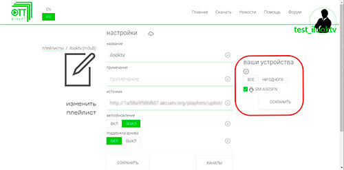 Работа с избранным в приложении Ottplayer