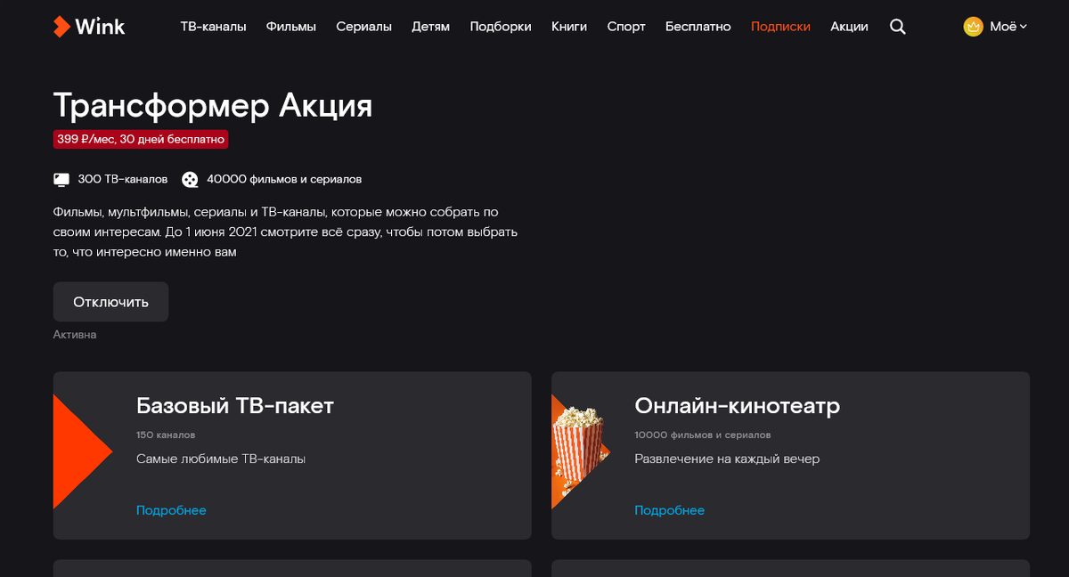 Отключение подписки в Wink