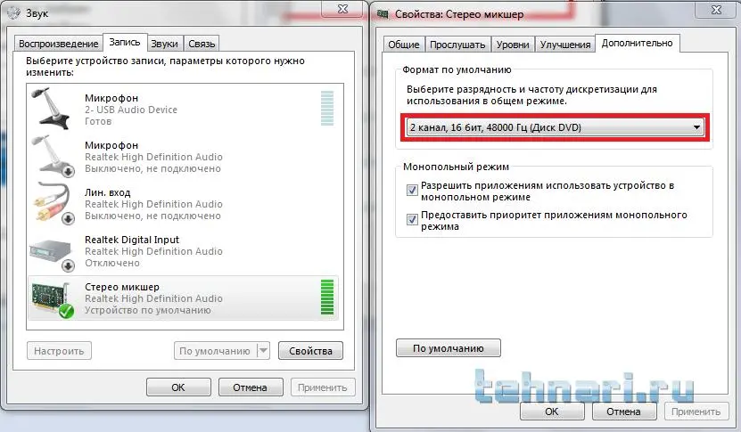 Стерео Микшер в Windows (не идет запись звука)