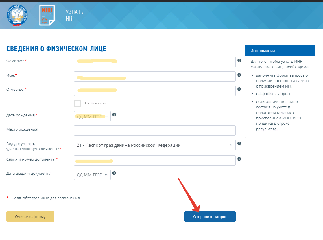 Как узнать ИНН онлайн по паспорту физического лица. Бесплатно на сайте налоговой.