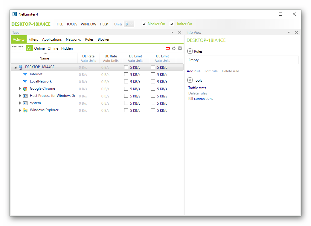 Установите предельную скорость для выбранного приложения в Netlimiter.