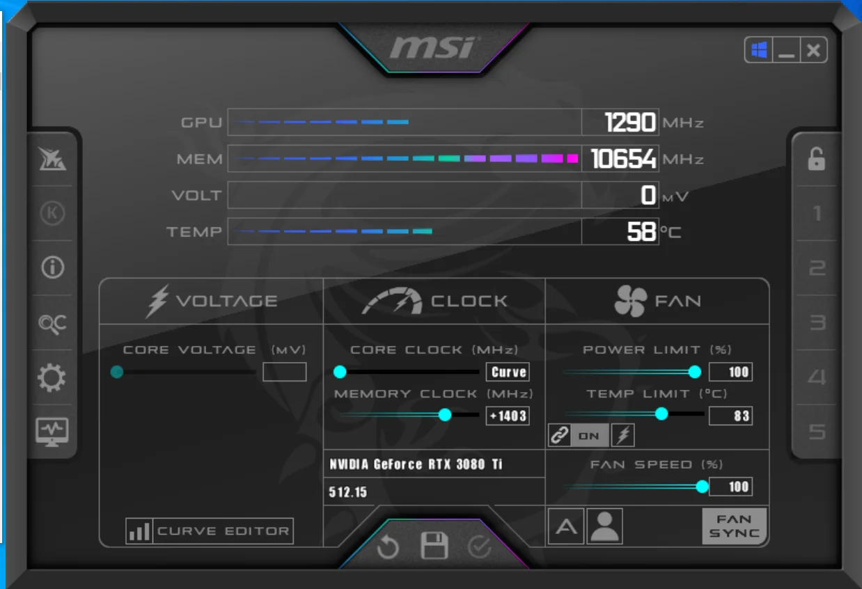 Настройка скорости вращения куллеров в MSI Afterburner