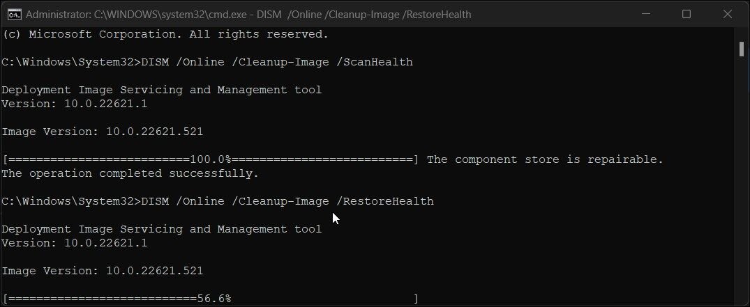 Используйте команду sfc /scannow для проверки целостности системных файлов и их восстановления.