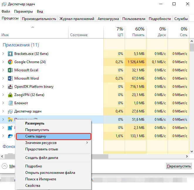Что делать если случайно снял задачу проводник в диспетчере задач