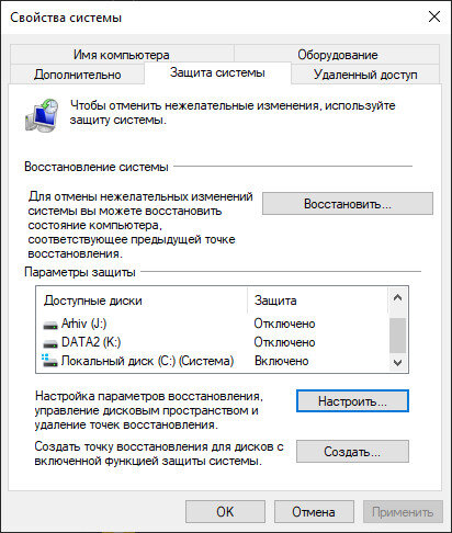На системном диске этого компьютера нет точек восстановления Windows 10