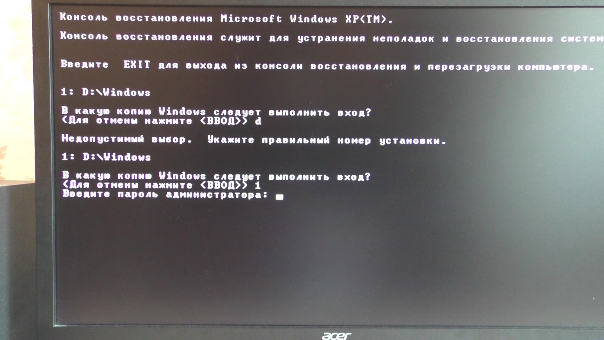 Введите свои учетные данные администратора и нажмите Enter, чтобы войти в консоль восстановления.