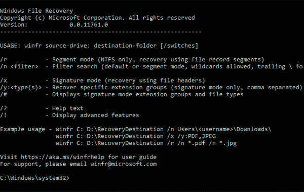 Восстановление удаленных файлов в программе Windows File Recovery