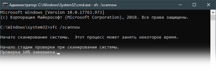 Введите sfc /scannow и нажмите Enter, чтобы запустить сканирование системных файлов.