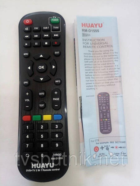 Настройка пульта HUAYU DVB-T2+3-TV. Как настроить пульт на приставку и телевизор. Разные способы.