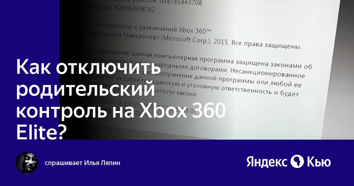 Сброс родительского контроля xbox 360