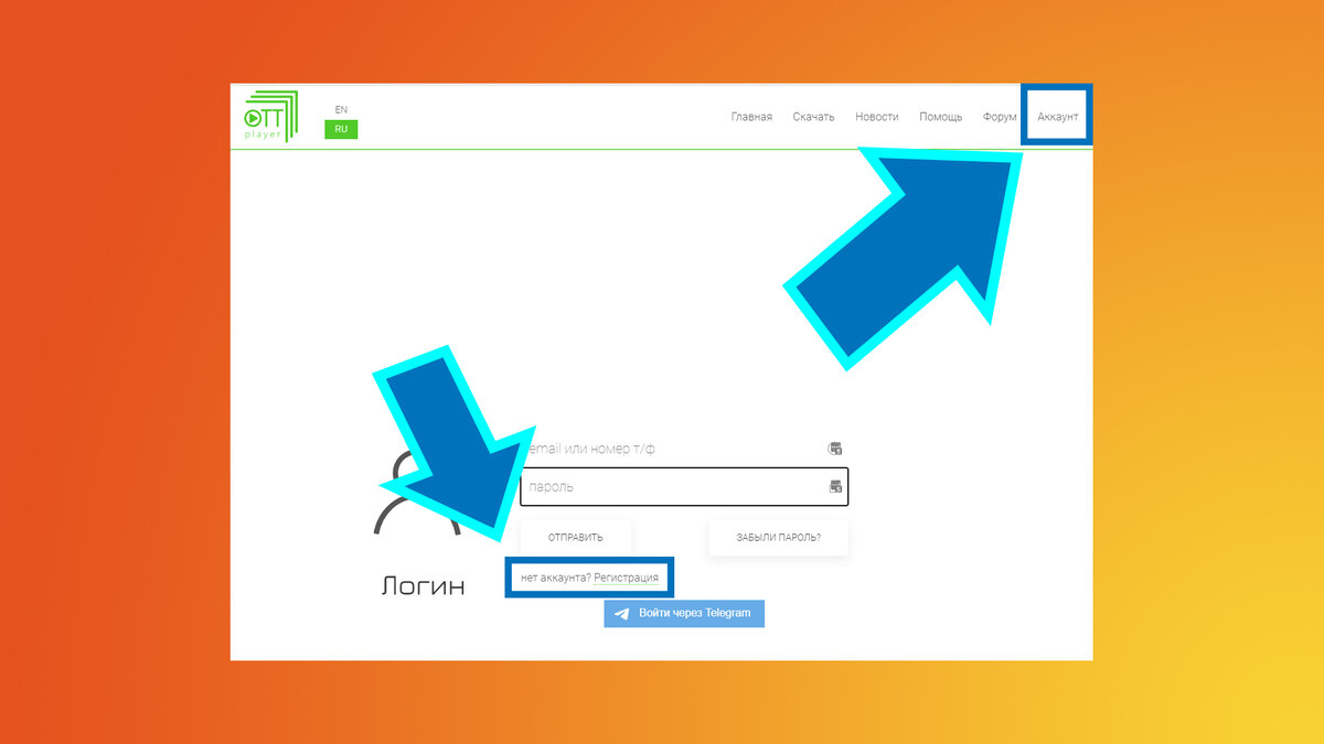 Как зарегистрироваться на сайте OTT-Player
