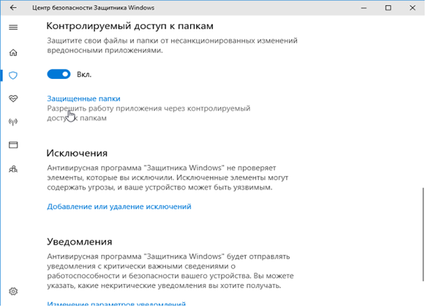 Как добавить файл или папку в исключения Защитника Windows 10?