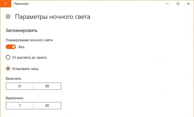 Используйте расписание активации ночного режима в Windows 10, чтобы автоматически включать его в определенное время каждый день.