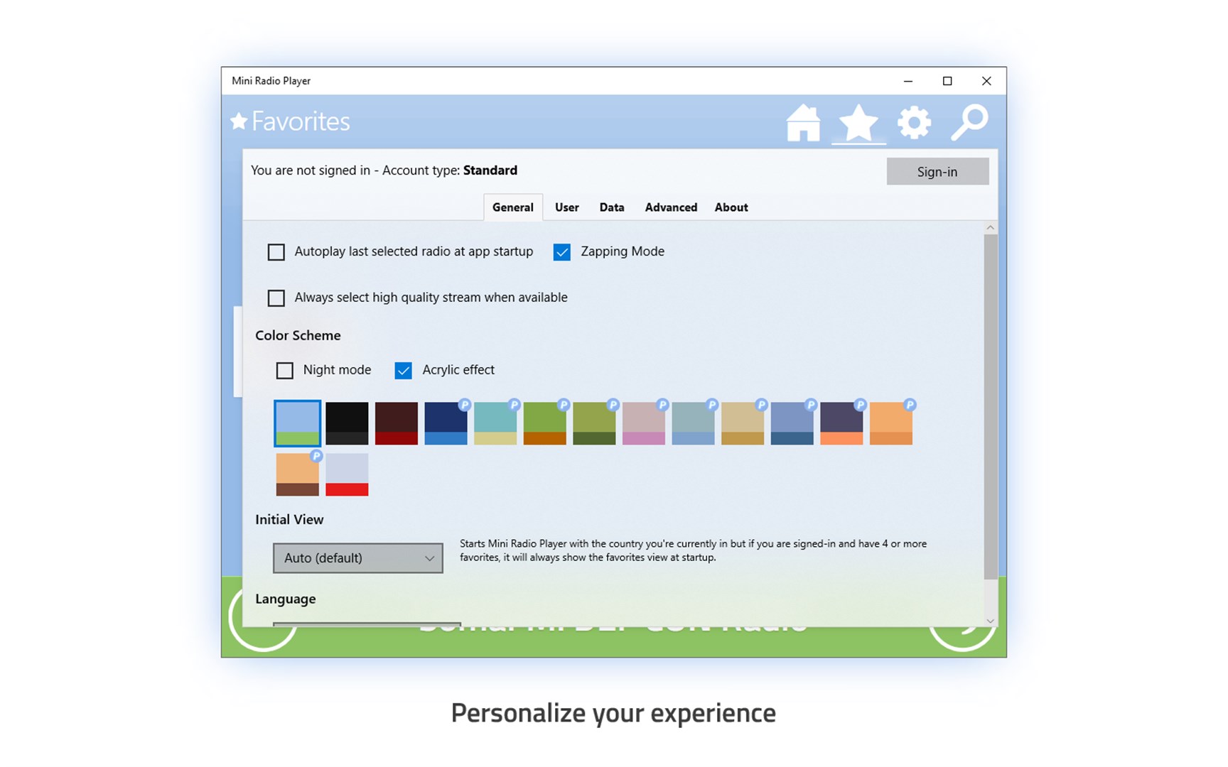 Пользуйтесь многоязычным интерфейсом радио виджета, чтобы наслаждаться музыкой на разных языках.