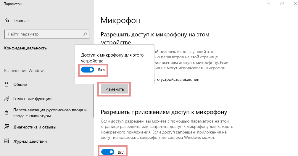 Как включить микрофон для приложений Windows 10