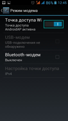 Выберите в меню Точка доступа Wi-Fi и включите данную опцию.