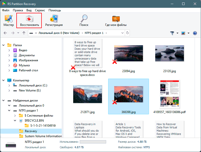 Не обновляйте или перезаписывайте данные на жестком диске до полного восстановления файловой системы.