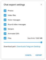 Подтвердите экспорт чата в Телеграм и дождитесь завершения процесса.