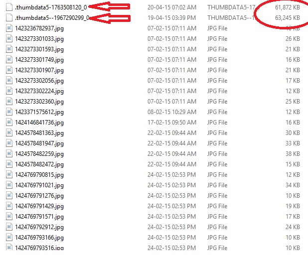 Внутри папки thumbnails вы увидите файлы с именами thumbdata и некоторыми номерами. Это и есть thumbdata файлы.