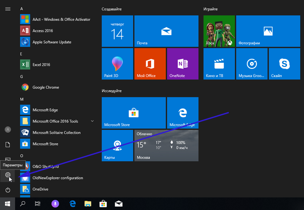Откройте меню Параметры Windows 10.