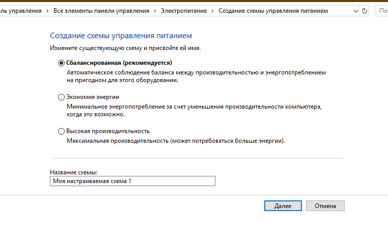 Используйте команду powercfg в командной строке для более гибкой настройки схем питания.