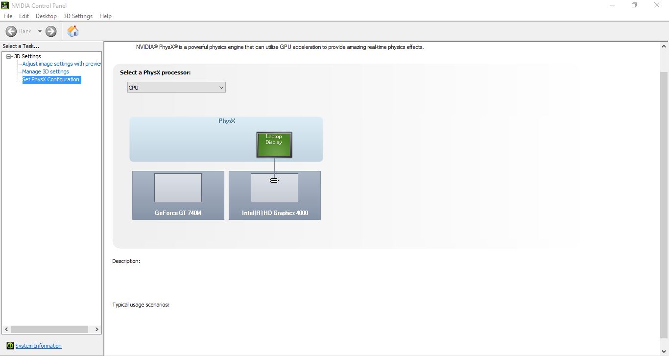 How to set PhysX Configuration in Nvidia Control Panel on Windows 10