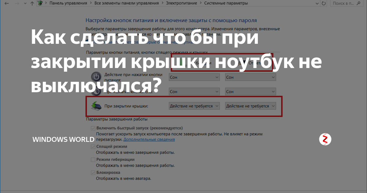 Проверьте настройки питания в панели управления и установите желаемое поведение при закрытии крышки.
