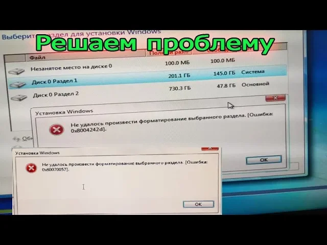 При установке Windows не удалось форматировать раздел на диске