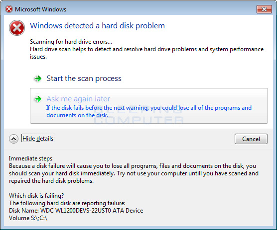 Решаем проблему с Hard disk error при старте ПК за минимальное время