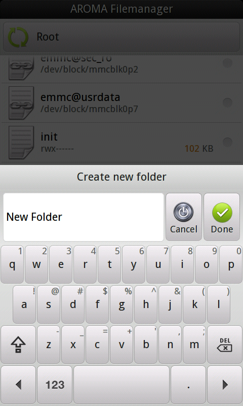 Следите за индикацией на экране и внимательно читайте все сообщения, появляющиеся в процессе работы Aroma File Manager.